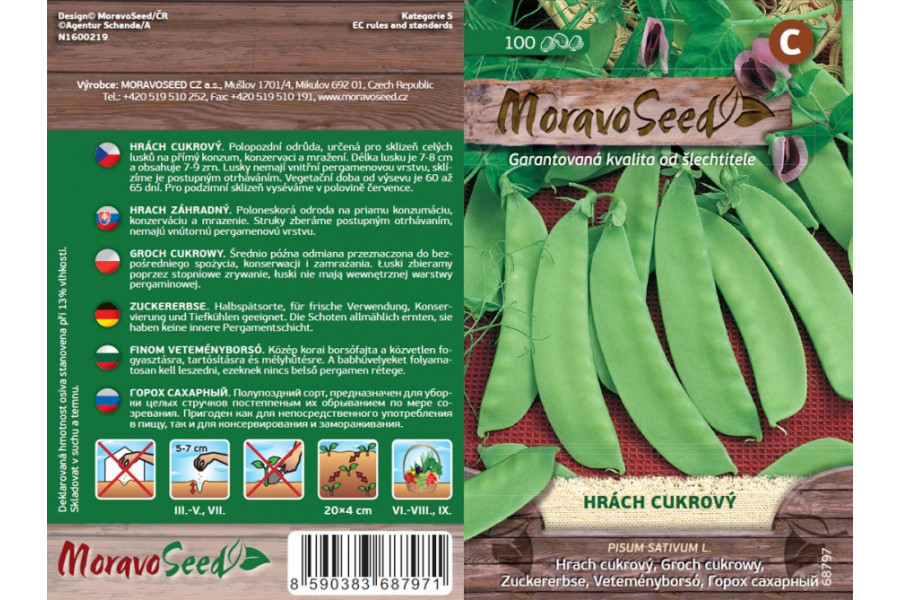 Polopozdní odrůda určená pro sklizeň celých lusků na přímý konzum, konzervaci a mražení. Délka lusku je 7-8 cm a obsahuje 7-9 zrn. Lusky nemají vnitřní pergamenovou vrstvu, sklízíme je postupným otrháváním. Vegetační doba od výsevu je 55 až 60 dní. Pro podzimní sklizeň vyseváme v polovině července.