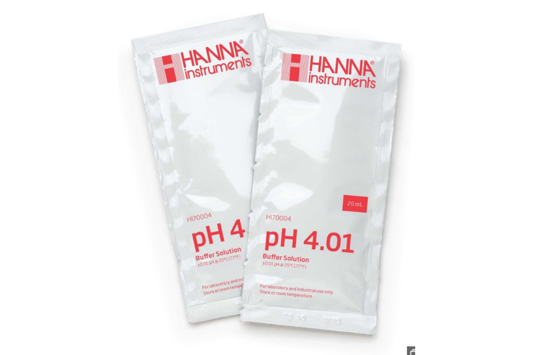 Kalibrační roztok pro pH 4,01 nebo 7,01. Barevné značení sáčku zjednodušuje orientaci mezi roztoky a minimalizuje tak chybovost. Sáčky jsou vyrobeny z hliníkové fólie.