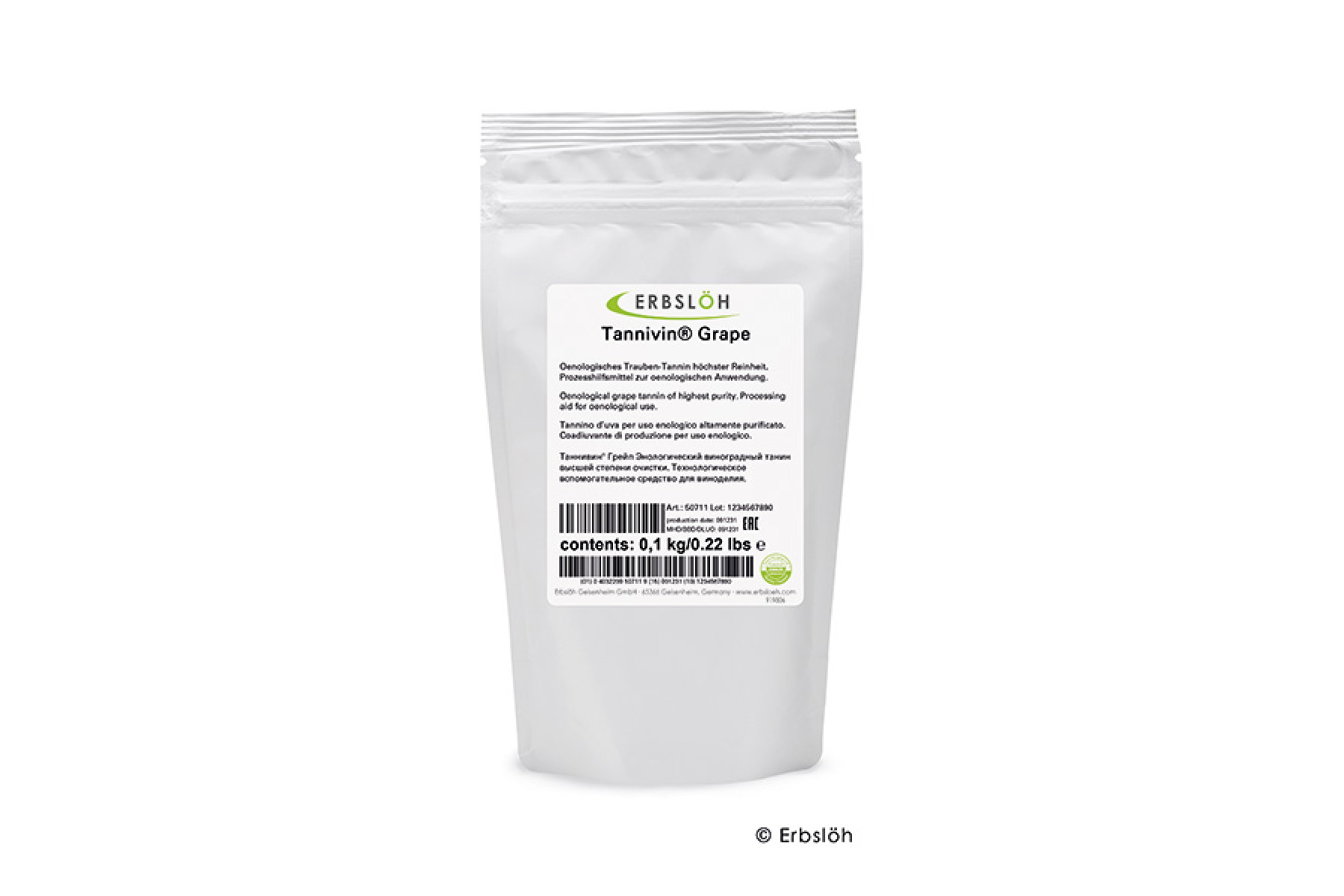 Použití taninů Erbslöh vede k získání kulatých, harmonických a sametových vín. Taniny Erbslöh podporují tělo, strukturu a ovocnost. Odrůdová typičnost je dosažena bez toho, aby taniny dominovaly ve výsledném produktu. Produkt odpovídá platným směrnicím a předpisům. Je laboratorně testován a čistota odpovídá pravidlům OIV. Dodržujte aktuální zákonné limity v jednotlivých zemích.