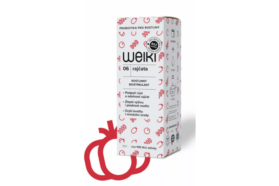 100% přírodní probiotika weiki podpoří růst i kvetení a uspíší dozrávání rajčat. Zlepší využití živin z hnojiva a posílí kořenový systém. Užitečné neboli probiotické bakterie také posílí odolnost rostlin, urychlí jejich regeneraci a potlačí patogeny. Výsledkem bude bohatší, kvalitnější a sladší úroda. Pro ekologické i konvenční pěstování, bez GMO, vědecky ověřené účinky.